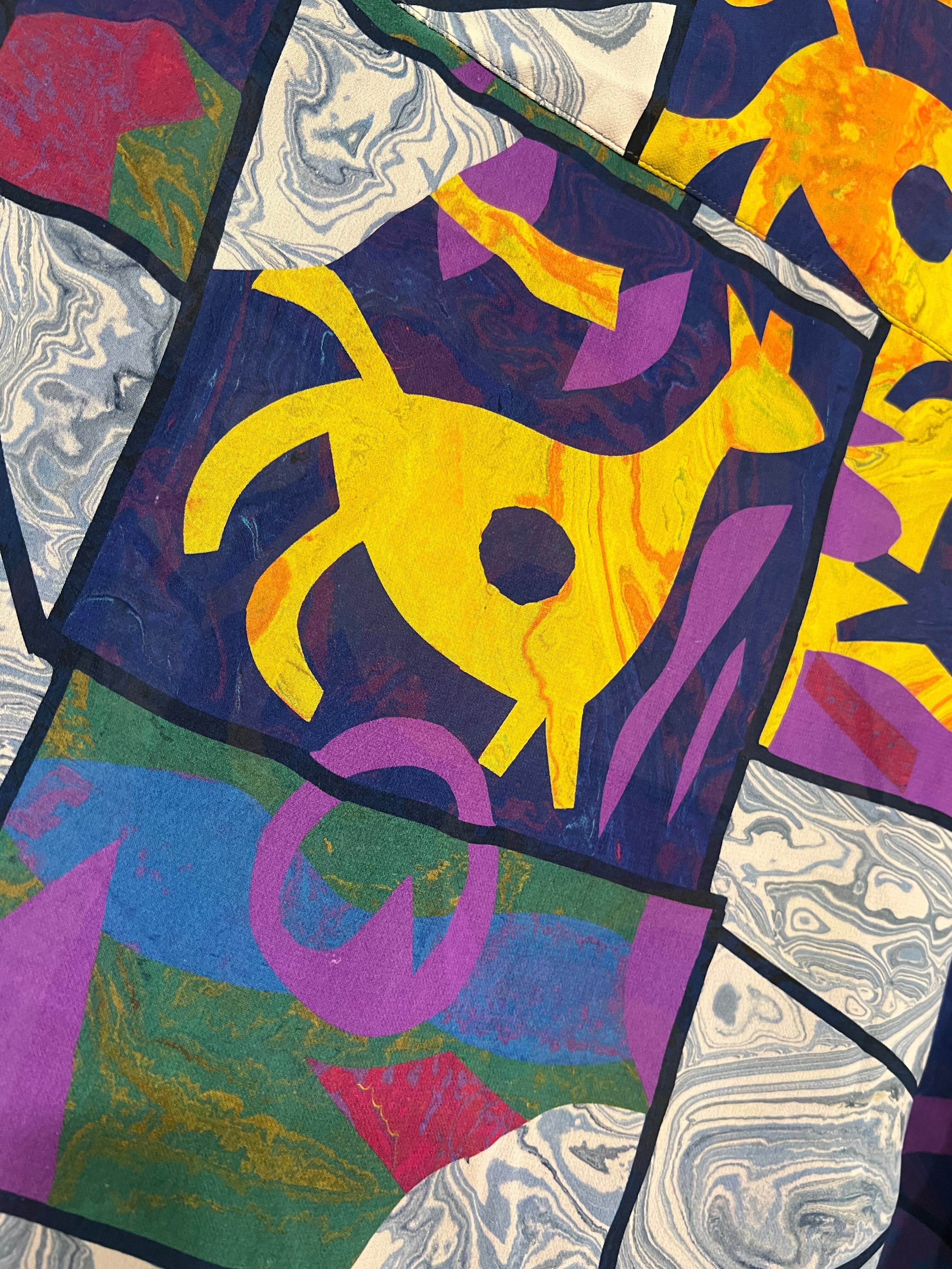独特な模様が印象的で、一枚でコーディネートのポイントになってくれるアイテムです。ポリエステル100%の柔かく、さらりとした素材感は、リラックスした着心地を実現し、カジュアルな日常使いはもちろん、イベントなど特別な場にも適したスタイルに仕上げてくれます。シンプルなボトムスと合わせるだけで、存在感を際立たせることができる魅力的な一枚です。
